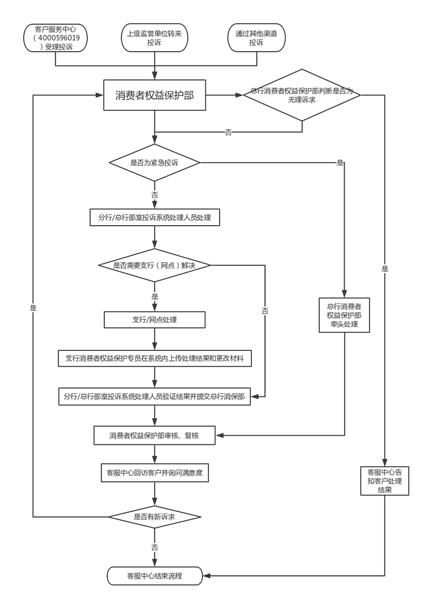 总行客服电话、信函或监管机构/政府部门等转送投诉处理流程如下: